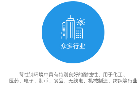 Typical application fields: It has particularly good corrosion resistance in caustic soda environment, and is used in industries such as chemical, medicine, electronics, currency, food, radio, machinery manufacturing, and textiles.