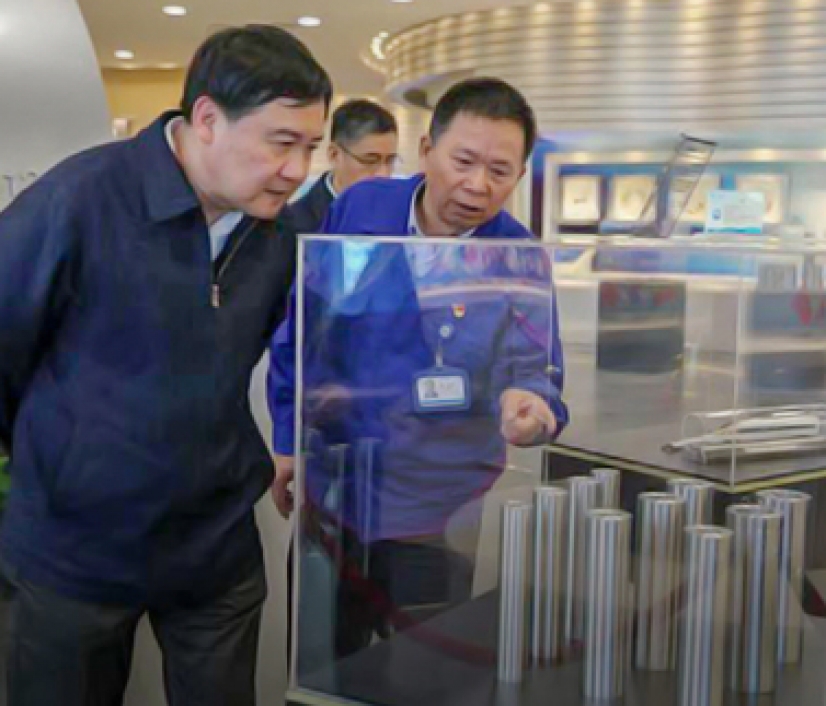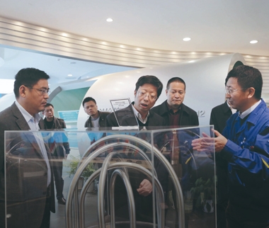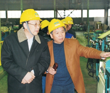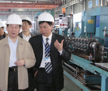 2007年2月,时任浙江省原副省长金德水(左二)视察久立生产现场