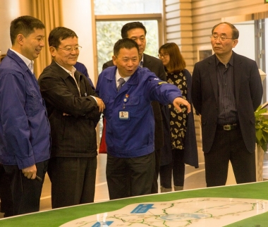 2011年,时任浙江省省长吕祖善(左一)与周志江董事长等人大代表一起视察